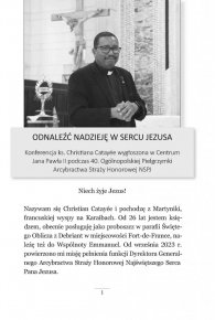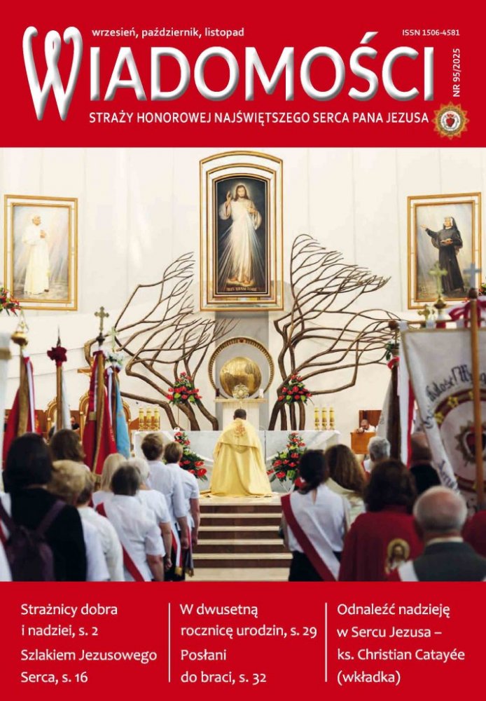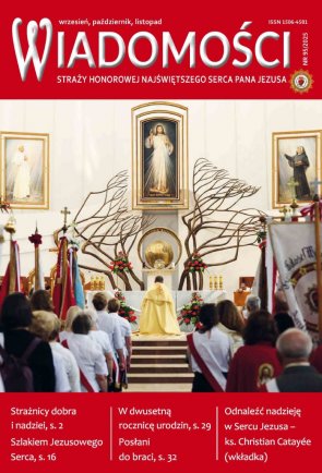 Nowe wydanie „Wiadomości” otwiera tekst zel. Beaty Rubiś Strażnicy dobra i nadziei, relacjonujący 40. Ogólnopolską Pielgrzymkę Arcybractwa Straży Honorowej NSPJ do Centrum Jana Pawła II i Sanktuarium Miłosierdzia Bożego w Krakowie-Łagiewnikach. Podczas tego wydarzenia gościem specjalnym był ks. Christian Catayée, Dyrektor Generalny naszego Arcybractwa, który wygłosił konferencję Odnaleźć nadzieję w Sercu Jezusa (wkładka). Temat nadziei pojawił się również w homilii ks. bpa Stanisława Salaterskiego (art. Drogi nadziei). Innym ważnym wydarzeniem ostatnich miesięcy była pielgrzymka do Francji i Włoch, a relację z niej zdaje zel. diec. Agnieszka Bieniek OV (art. Szlakiem Jezusowego Serca, cz. I).