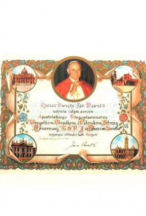Błogosławieństwo Jana Pawła II, którego udzielił członkom Arcybractwa Straży Honorowej 11 kwietnia 1996 r.: „Ojciec Święty Jan Paweł II udziela całym sercem Apostolskiego Błogosławieństwa wszystkim Ośrodkom i Członkom Straży Honorowej NSPJ w Polsce i na świecie, wzywając obfitości łask Bożych”.